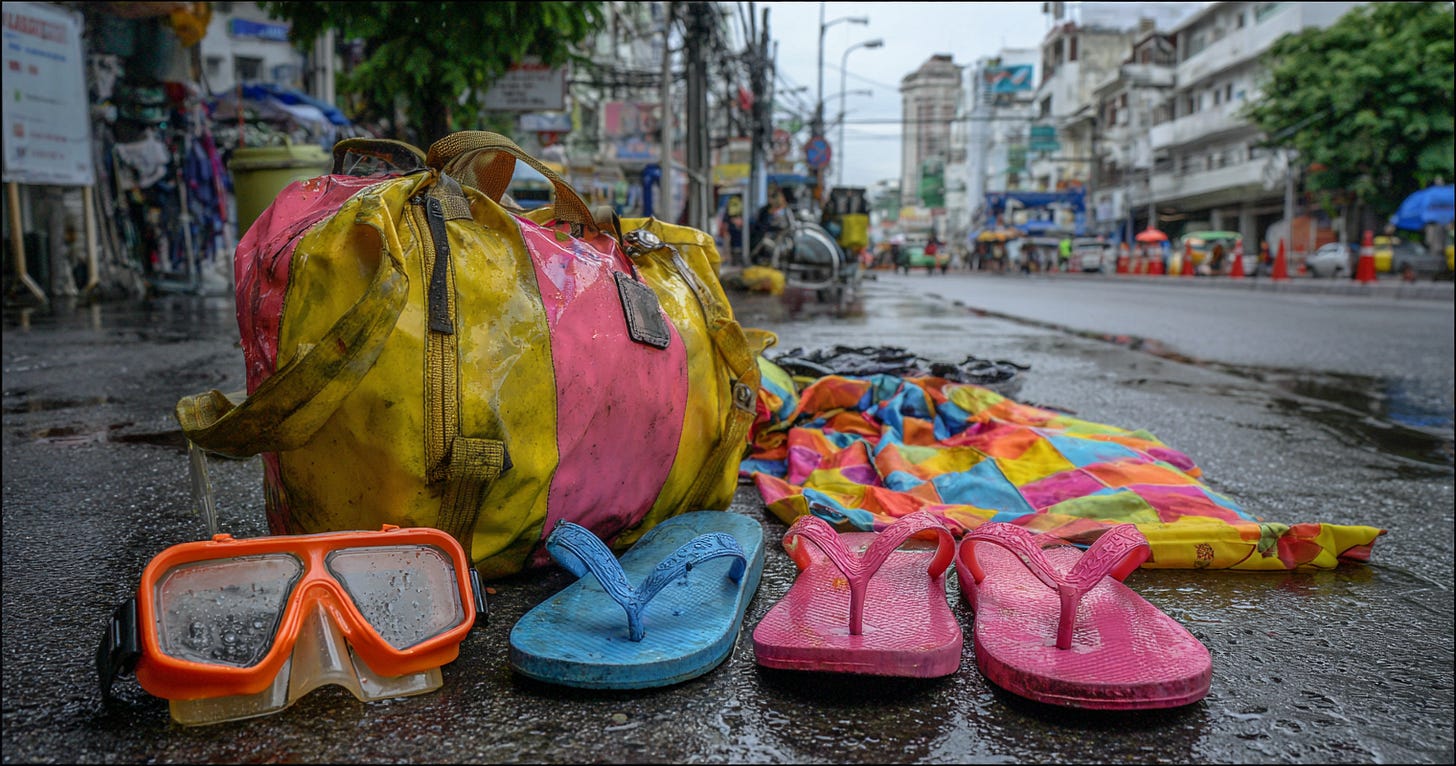 Extras — Your own super soaker (or buy street-side), eye protection/goggles (water in eyes hurts), sunscreen (water doesn’t block UV), small cash stash (500–1,000 baht in zip pouch—ATMs get wet). Leave big bags at hotel/lockers.